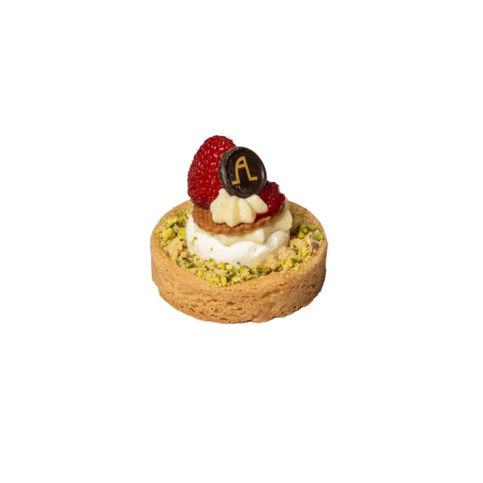 Jubileumtaartje – sloffenbodem – witte chocolade – framboos – pistache – vanille